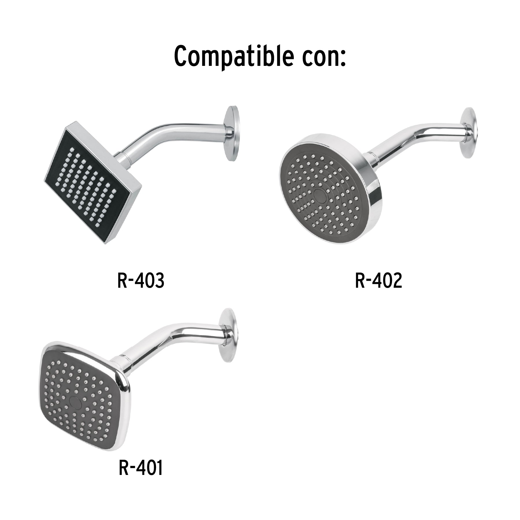Compatible con regaderas R-402, R-401, R-507, R-007 y R-506 marca Foset®