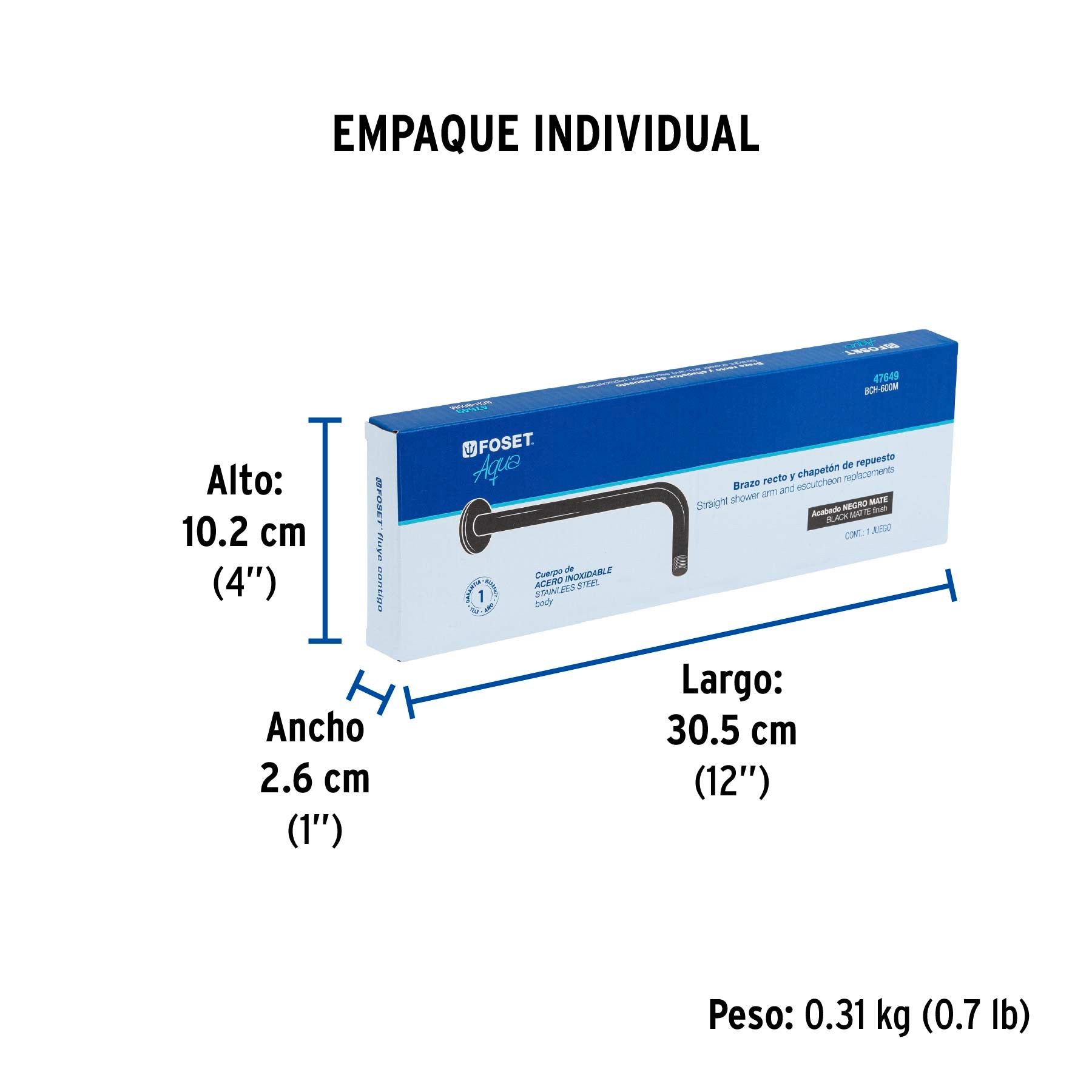 Brazo de acero y chapetón de acero inoxidable con acabado negro mate