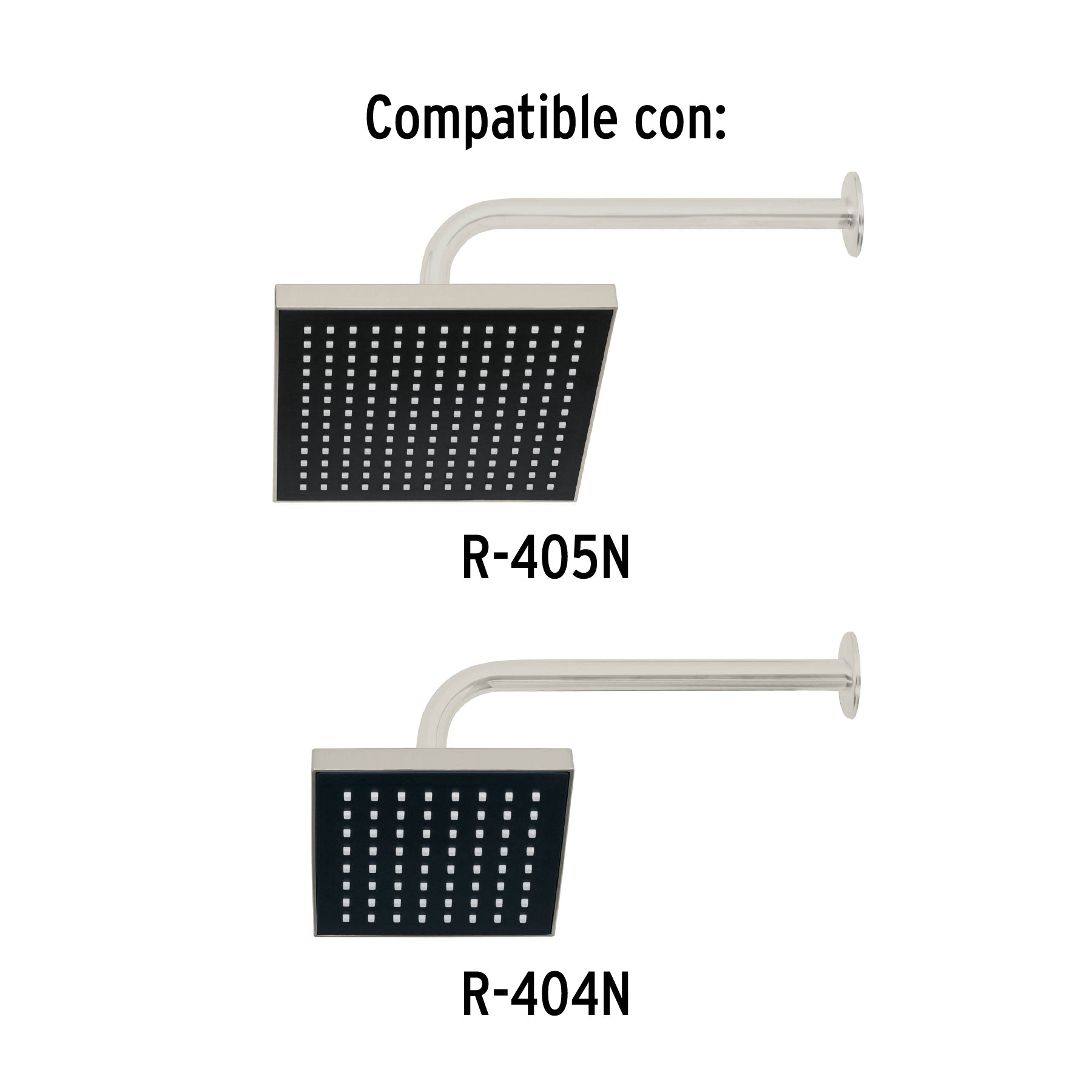 Brazo recto con chapetón para regadera, 30 cm, satín, Foset 47648
