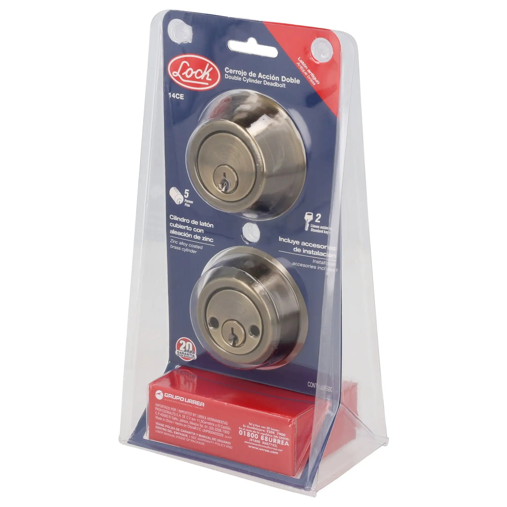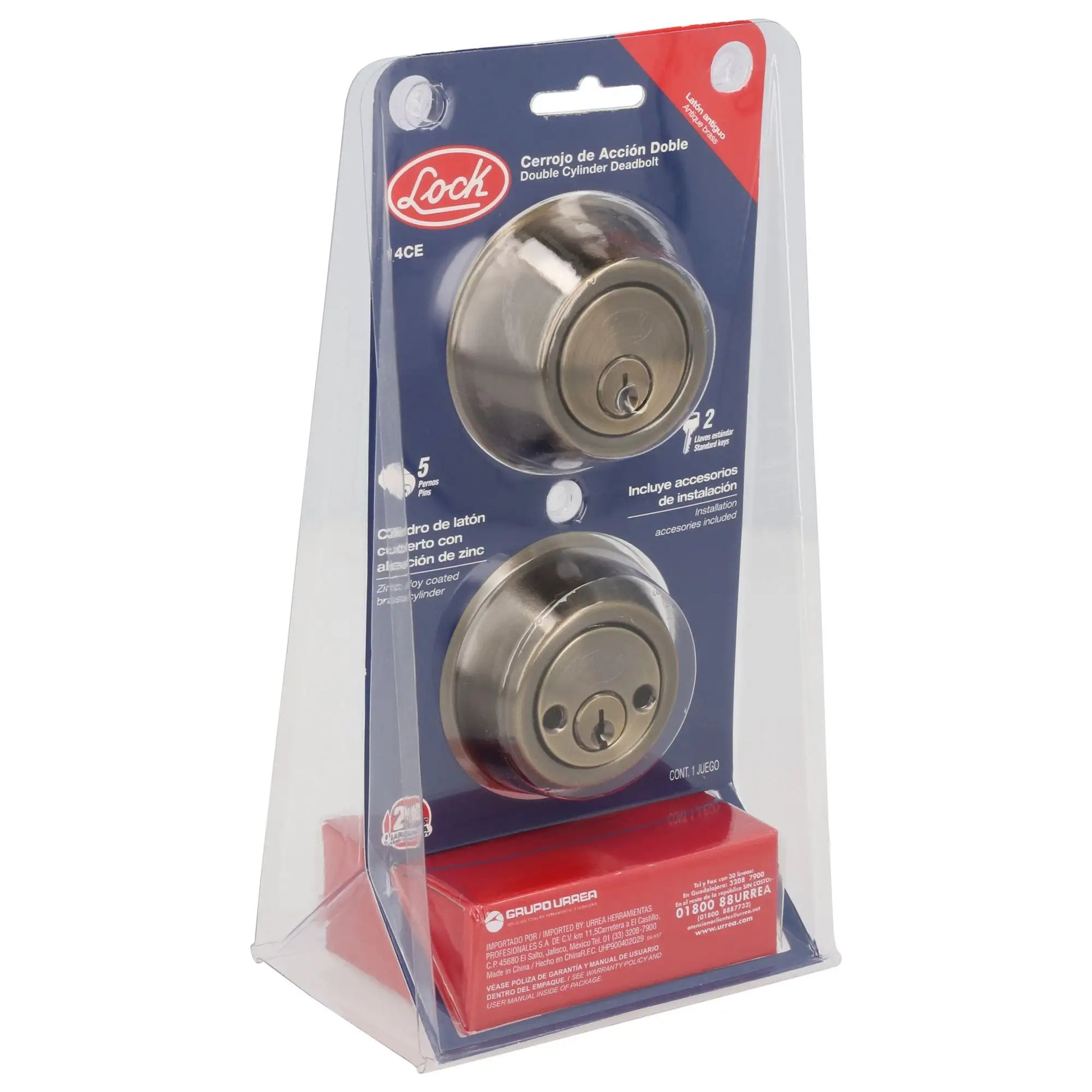Cerrojo residencial función doble, latón antiguo, llave estándar, blíster