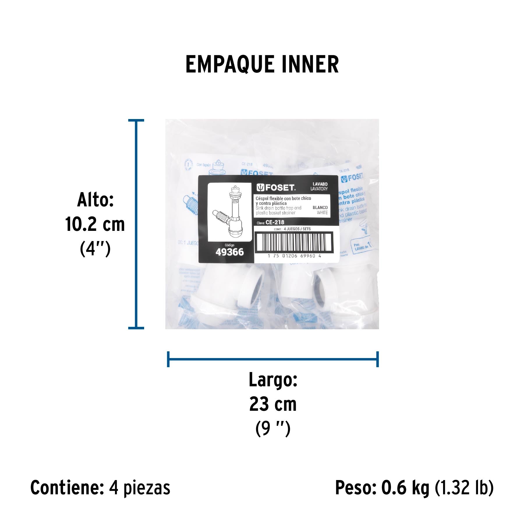 Céspol de bote 1-1/4", contra, polipropileno, para lavabo 49366