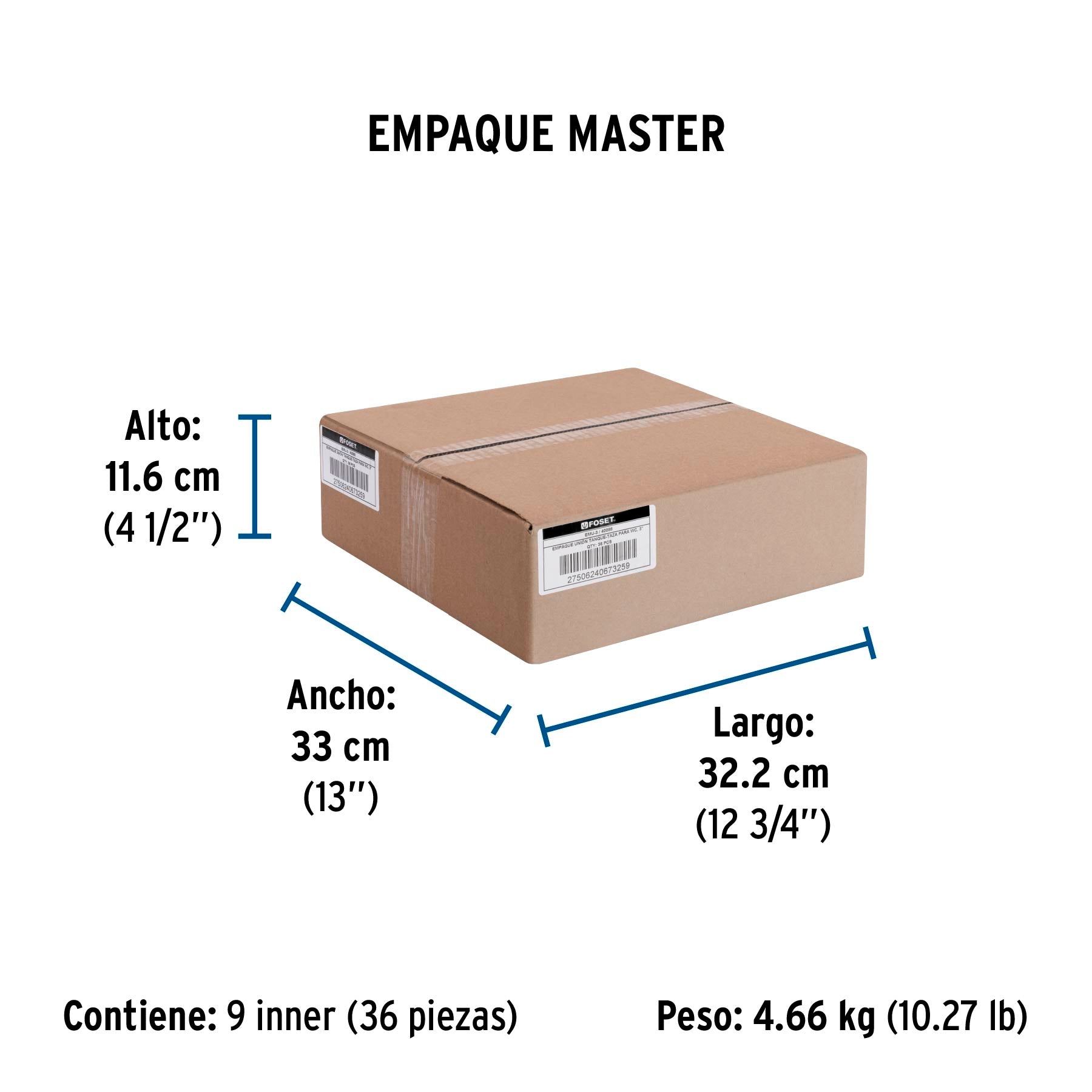 Empaque unión tanque-taza para WC, 3", FOSET 40088
