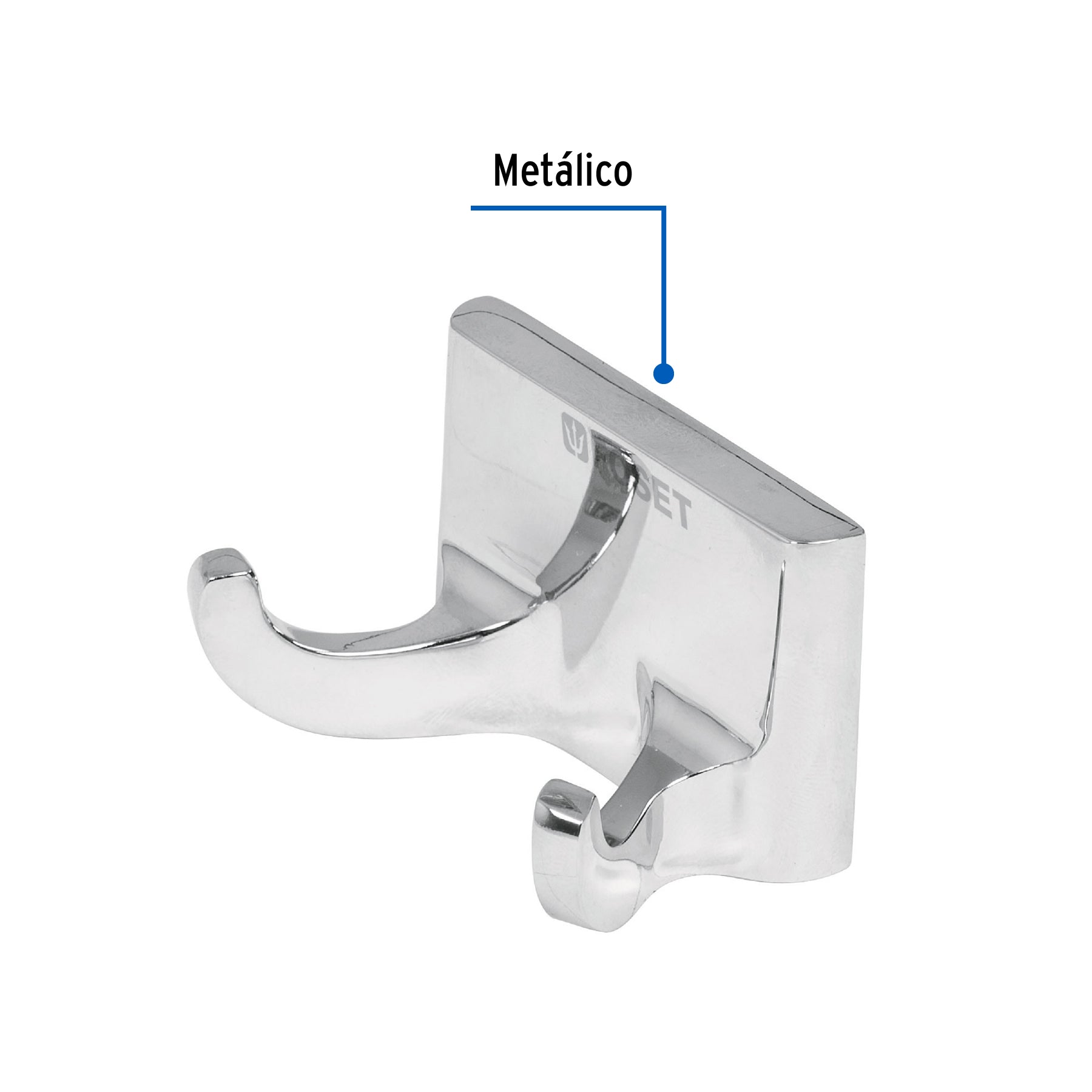 Gancho doble para toallas, metálico, cromo, BASIC 49609