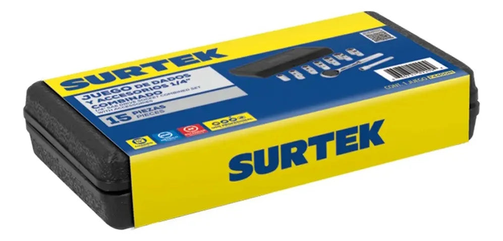 JUEGO DE 15 DADOS MÉTRICOS CUADRO DE 1/4", 6 PUNTAS SURTEK