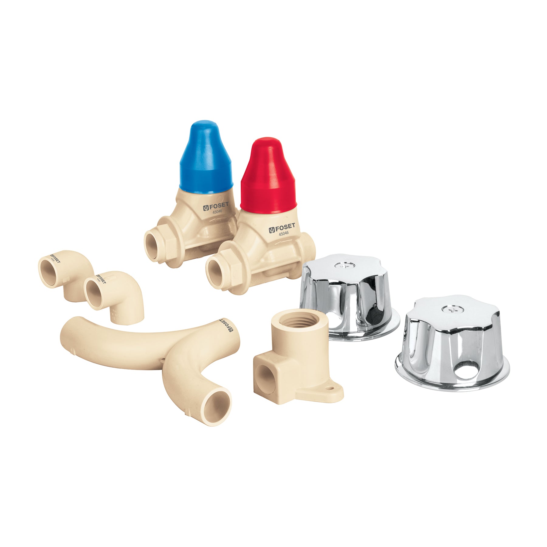 Kit de instalación p/regadera CPVC 1/2" con manerales, FOSET 46033