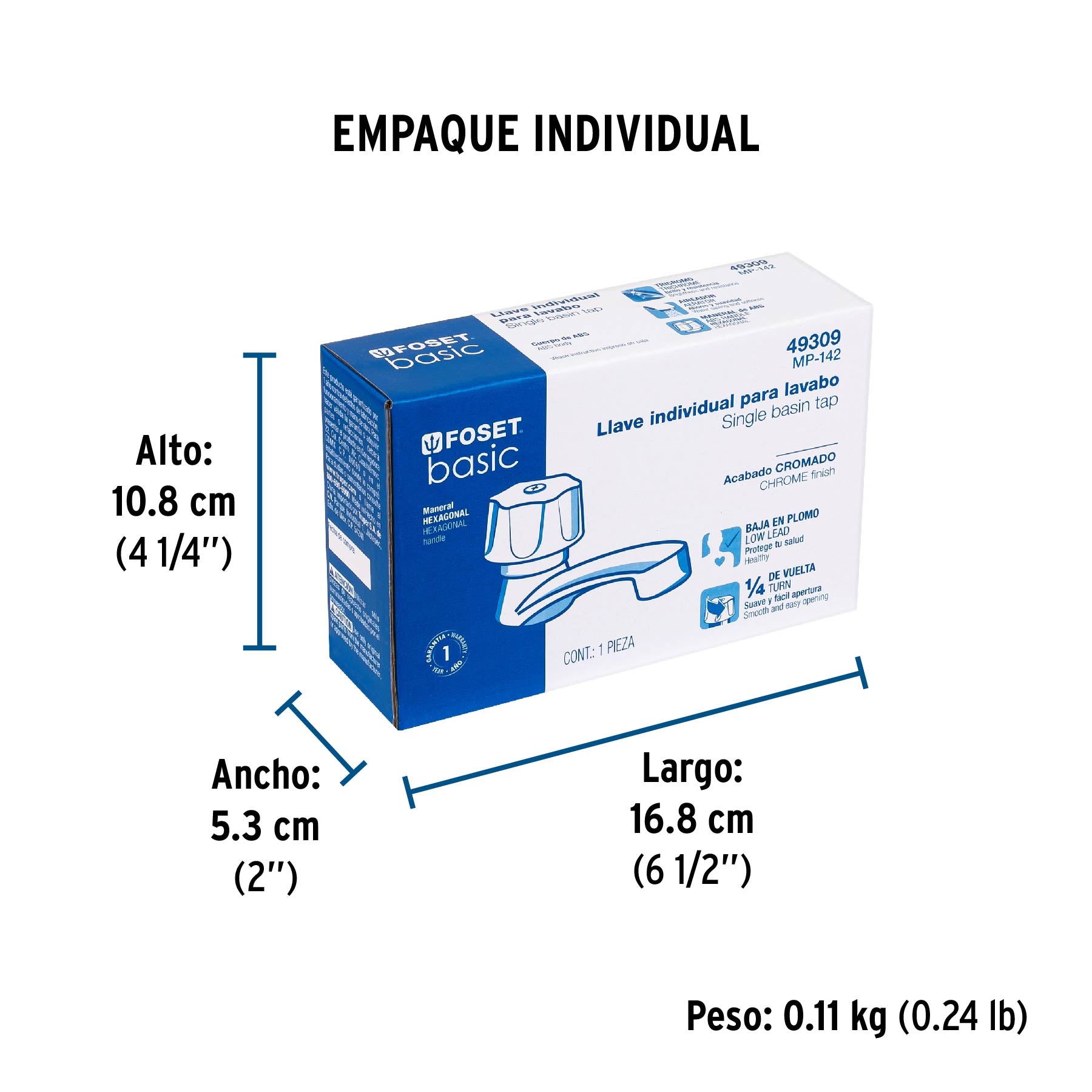 Llave individual lavabo, ABS, hexagonal, BASIC 49309
