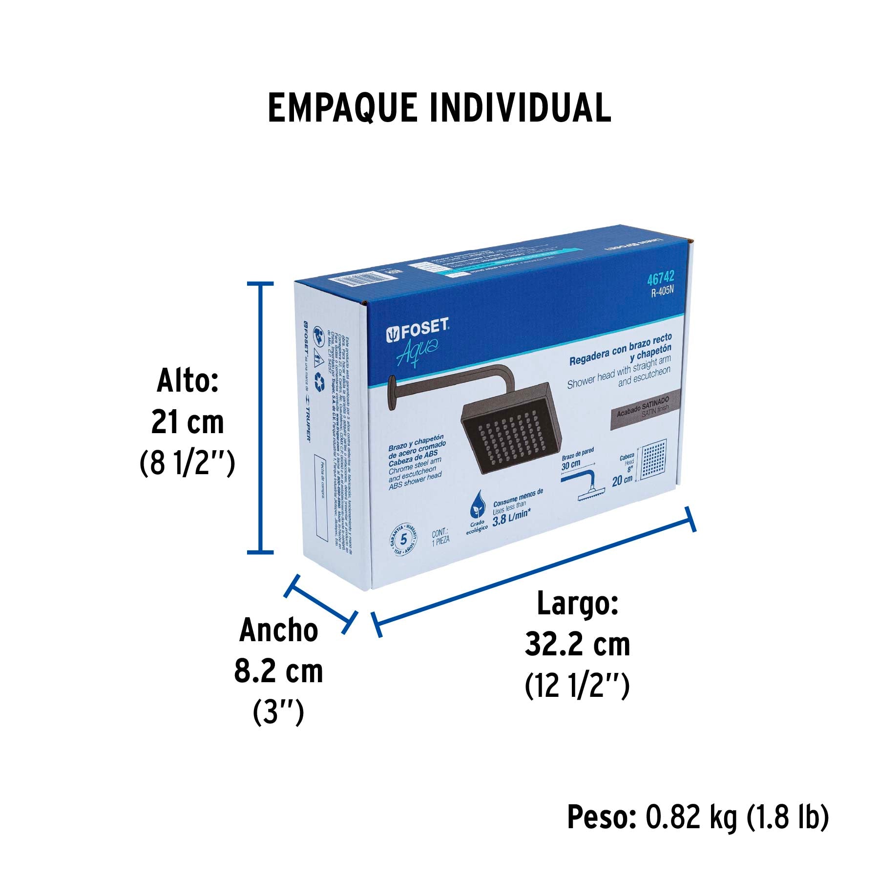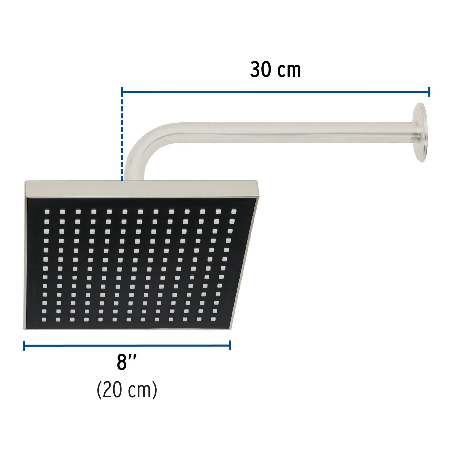 Regadera cuadrada ABS 8" acabado satín con brazo, Foset 46742