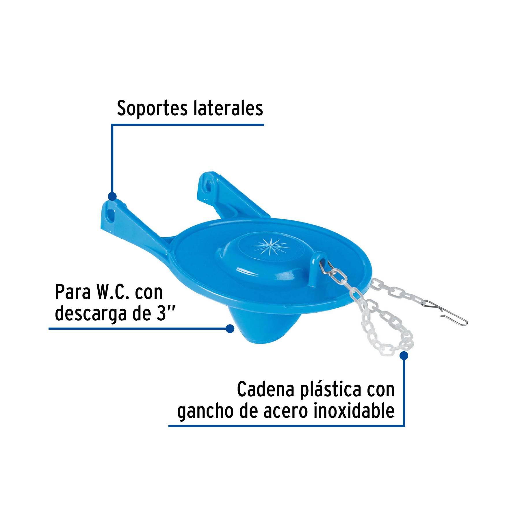 Sapo 3" para WC, PVC, azul, cadena plástica, FOSET 40172
